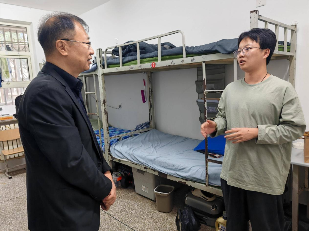 王斌与同学们进行了亲切交谈,细致地询问了大家近期的学习安排、生活状况以及假期规划,耐心倾听同学们的心声。他勉励同学们要珍惜在校时光,合理安排假期的学习生活,并叮嘱大家要与家人保持联系,汇报在校情况,让家人安心。