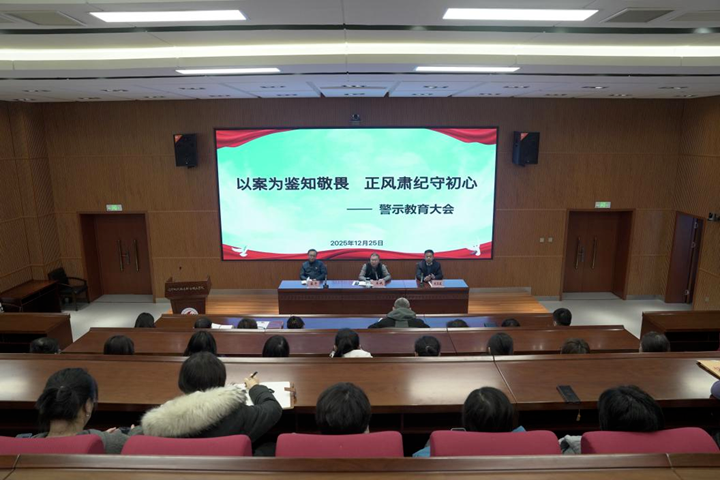为深入推进党风廉政建设,进一步强化学校党员干部纪律意识和规矩意识,做到以案为鉴、警钟长鸣,12月25日下午,学校在学术报告厅举行“以案为鉴知敬畏,正风肃纪守初心”为主题的警示教育大会。学校党政领导班子成员出席会议,本次会议由纪检监察处处长孟德娜主持。