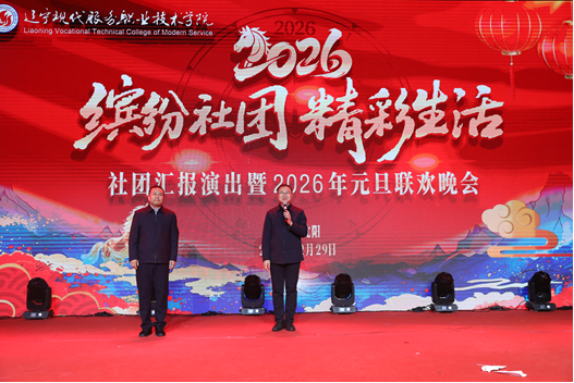 岁聿云暮,新元肇启。为展现我校学生社团建设成果,丰富校园文化生活,营造喜庆祥和的新年氛围,12月29日,学校“缤纷社团 精彩生活”社团汇报演出暨2026年元旦联欢晚会在文体馆隆重举行。学校党委书记王斌、校长卢全、党委副书记董毓良、纪委书记刘玉波、副校长崔平及相关部门负责人、教师代表,与全体学生欢聚一堂,共赴青春盛宴,喜迎2026年马年新春。