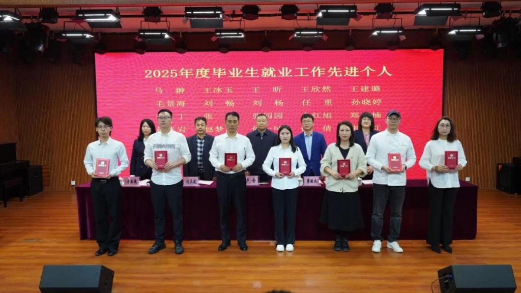 董毓良宣读《关于表彰2025年就业工作先进集体和先进个人的决定》。校领导为获奖的就业工作先进集体和先进个人颁奖。