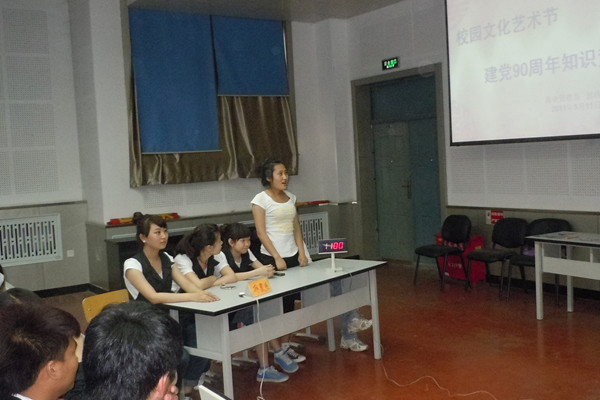 各个系部以小组形式参加比赛,此次知识竞赛题目涉及了党的成立、党的历史等诸多方面的知识。在经过了必答题、抢答题和风险题的几轮激烈角逐之后,商业管理系和酒店管理系脱颖而出进入决赛。在比赛过程中还设立了观众答题环节,由礼物派送员现场提问,观众抢答的形式进行了互动。活跃的现场气氛吸引了众多师生驻足观看。同学们通过回答党史问题,更加全面了解党的奋斗历程、新时期的任务、新生活的来之不易,进一步学习和宣传马列主义、毛泽东思想、邓小平理论、三个代表重要思想、八荣八耻荣辱观和科学发展观。