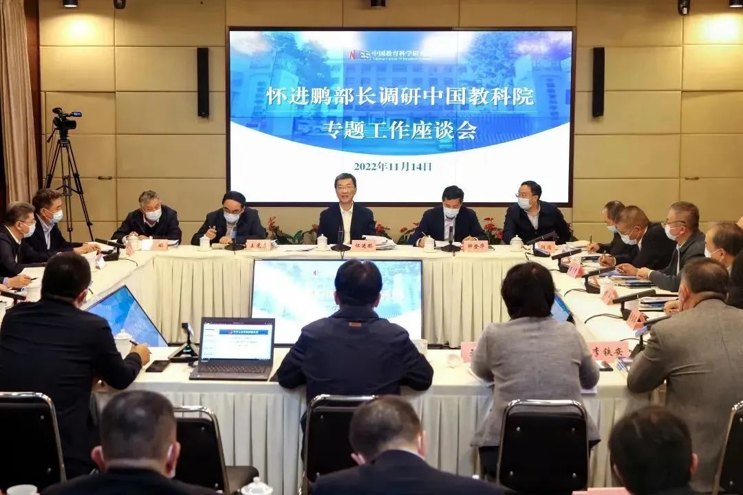 11月14日,教育部党组书记、部长怀进鹏在中国教育科学研究院调研教育科研工作情况,出席教育数字化专题座谈会,听取有关司局、单位国家智慧教育平台建设应用情况汇报和专家对推进教育数字化的意见建议并讲话。教育部党组成员、副部长钟登华主持座谈会。怀进鹏部长强调了哪些内容?