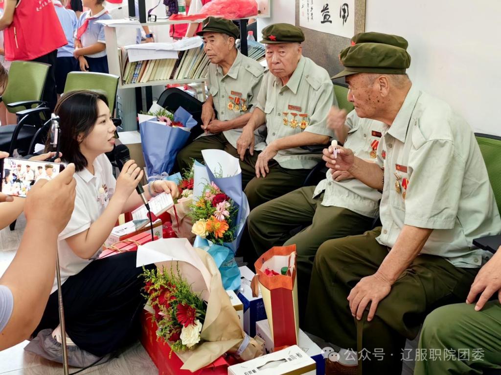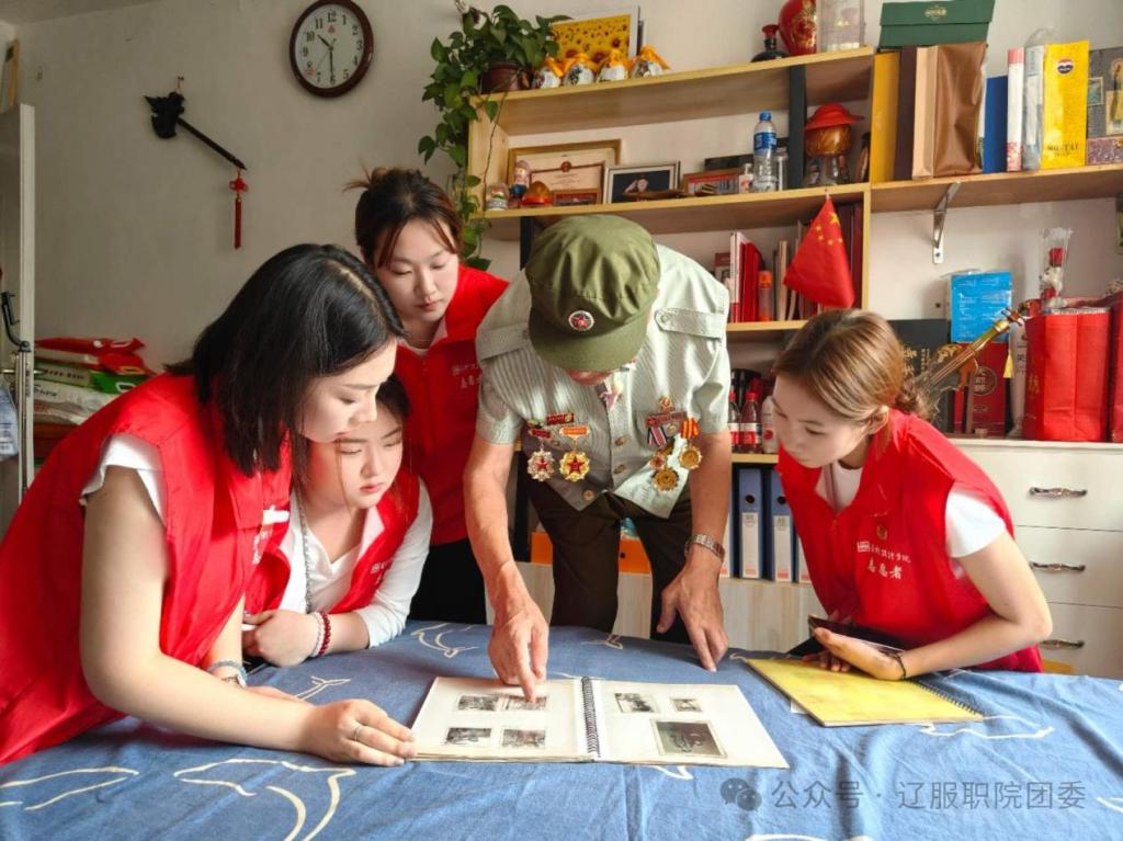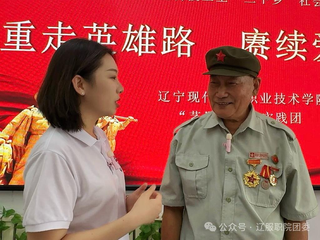 在沈阳的首日,“艺”心铸魂实践团拜访援越抗美老兵史庆胜。85岁的史老坐在沙发上,回忆起当年援越抗美战场上的经历。“子弹擦耳飞过,战友在身旁倒下”,在史老挽起的裤脚下能看到被燃烧弹烧黑的小腿,上面的疤痕至今未能痊愈。实践团的学生听到史老讲述着那段峥嵘岁月眼眶湿润,其中实践团的同学采访史老:您当时在战场上怕不怕?史老的回答让大家肃然起敬。他说:“我不怕!我从小就是孤儿,是共产党培养我的,所以我要报答共产党。”史老还向实践团的学生们讲述了当年战场上一件军大衣的故事并在采访结束后赠予学生们一本《毛主席语录》,并鼓励大学生走向社会后发挥自身能力建设祖国。