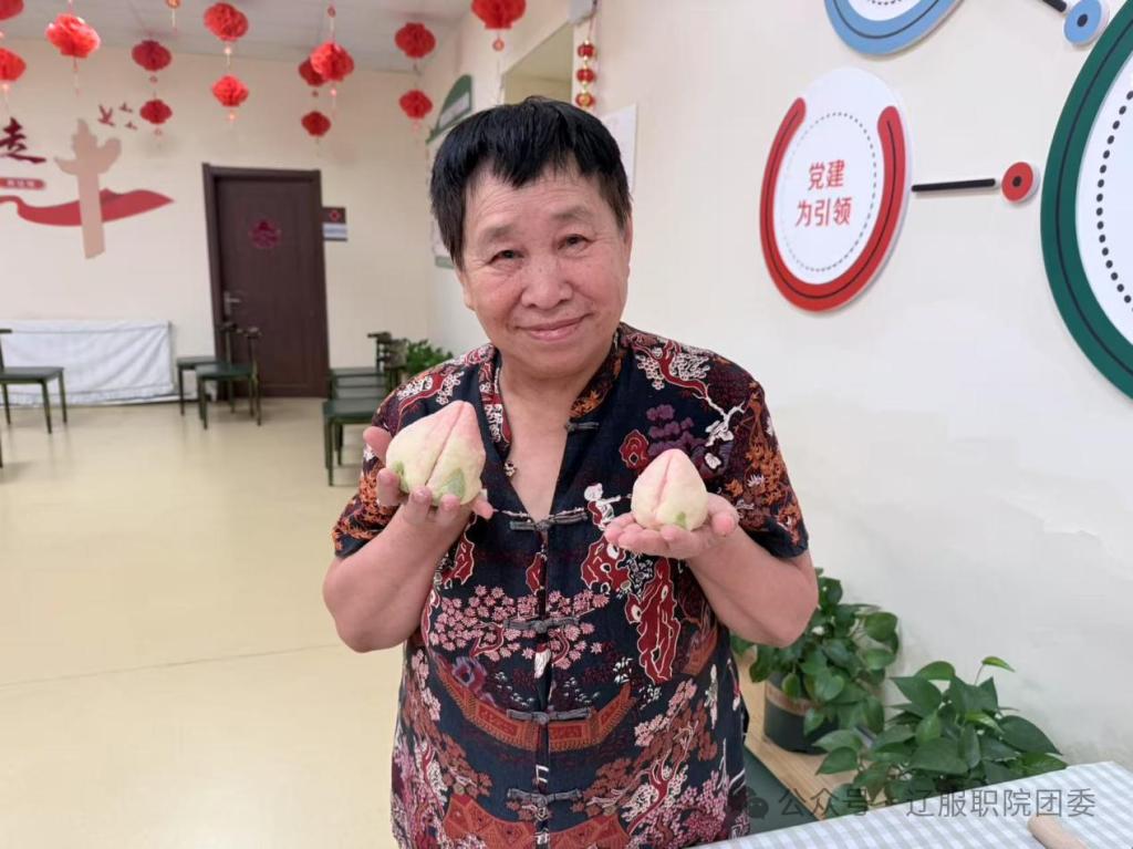 图为 志愿者在辉山社区制作传统寿桃花馍的过程中,当需要进行上色工序时,实践团的成员们积极主动地参与到这项工作中来。大家分工协作,相互配合,确保每一个花馍都能呈现出最完美的色彩效果。更通过亲身参与,深入了解了这项传统工艺的制作细节和技巧。李香波 供图