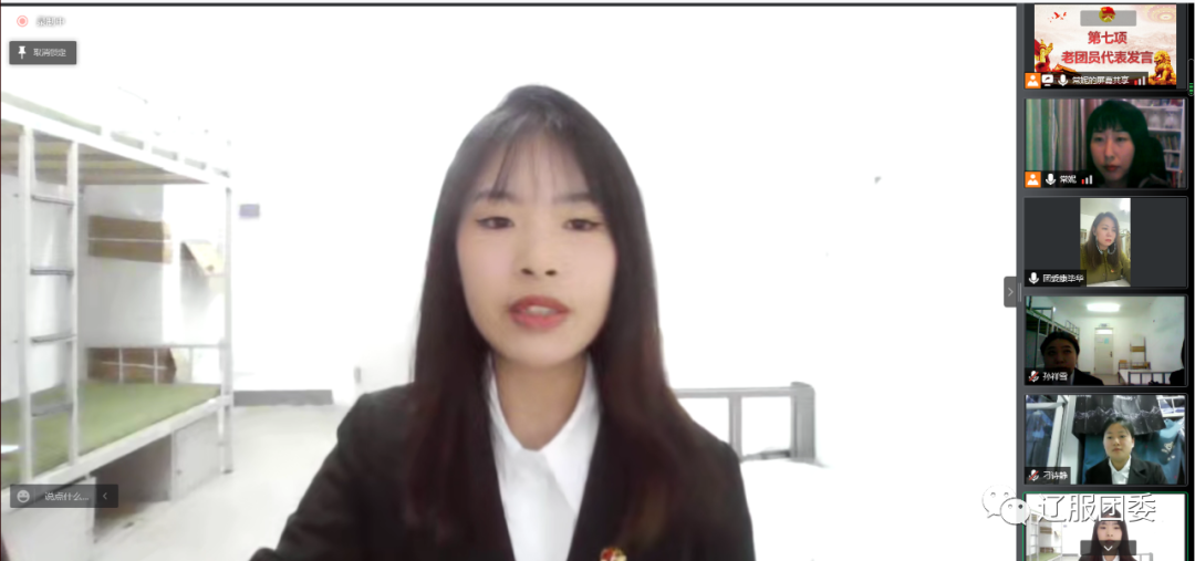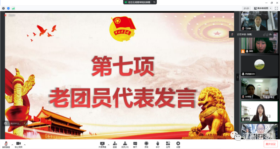 商业管理学院20级电子商务1班张媛代表老团员发言,在发言中她对新团员的加入表示热烈欢迎,希望新团员能发挥各自的特长,为团的工作和活动增添光彩!新老团员共同努力,在担当中历练,在尽责中成长,齐心协力把团组织建设的更好。