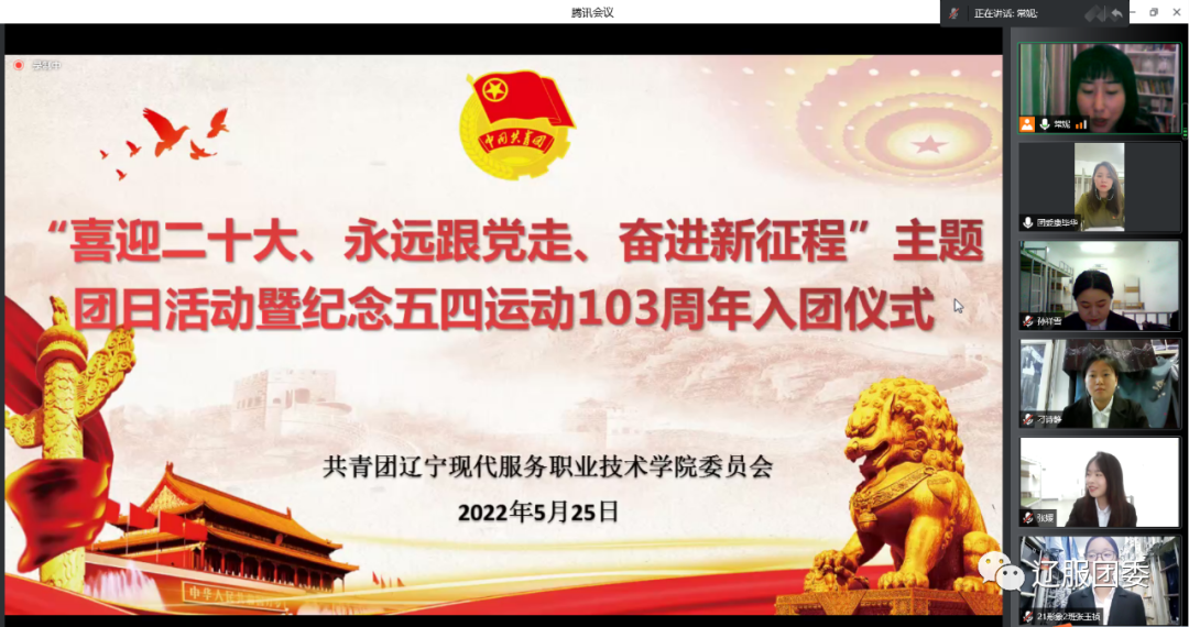 学院团委于5月25日晚,在腾讯会议举办线上“喜迎二十大 永远跟党走 奋进新征程”主题团日活动暨纪念五四运动103周年入团仪式。学院团委书记康毕华及24名新团员参加了入团仪式,入团仪式由团委组织干事常妮老师主持。