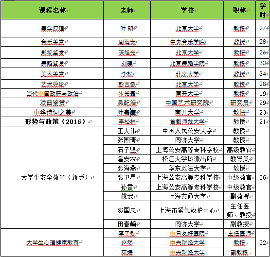 备选课程须涵盖上述课程体系,备选课程数量不少于230门(课程需均是通识课程不得有专业课程),需包括以下重要课程:
